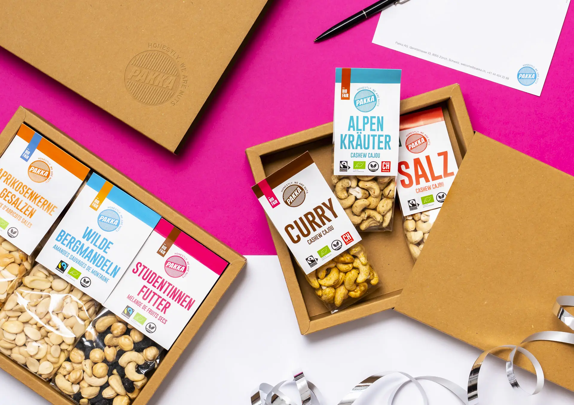 Entdecke die neuen Pakka-Geschenkboxen gefüllt mit unseren Favoriten aus verantwortungsvollem Anbau und fairem Handel – mal würzig, mal fruchtig-nussig. Schonend verarbeitet, sorgfältig veredelt und liebevoll verpackt durch den Verein Werkstätte Drahtzug. Mit dem umweltfreundlichen, schlichten Naturkarton wird jede Box zu einem genussvollen Geschenk.