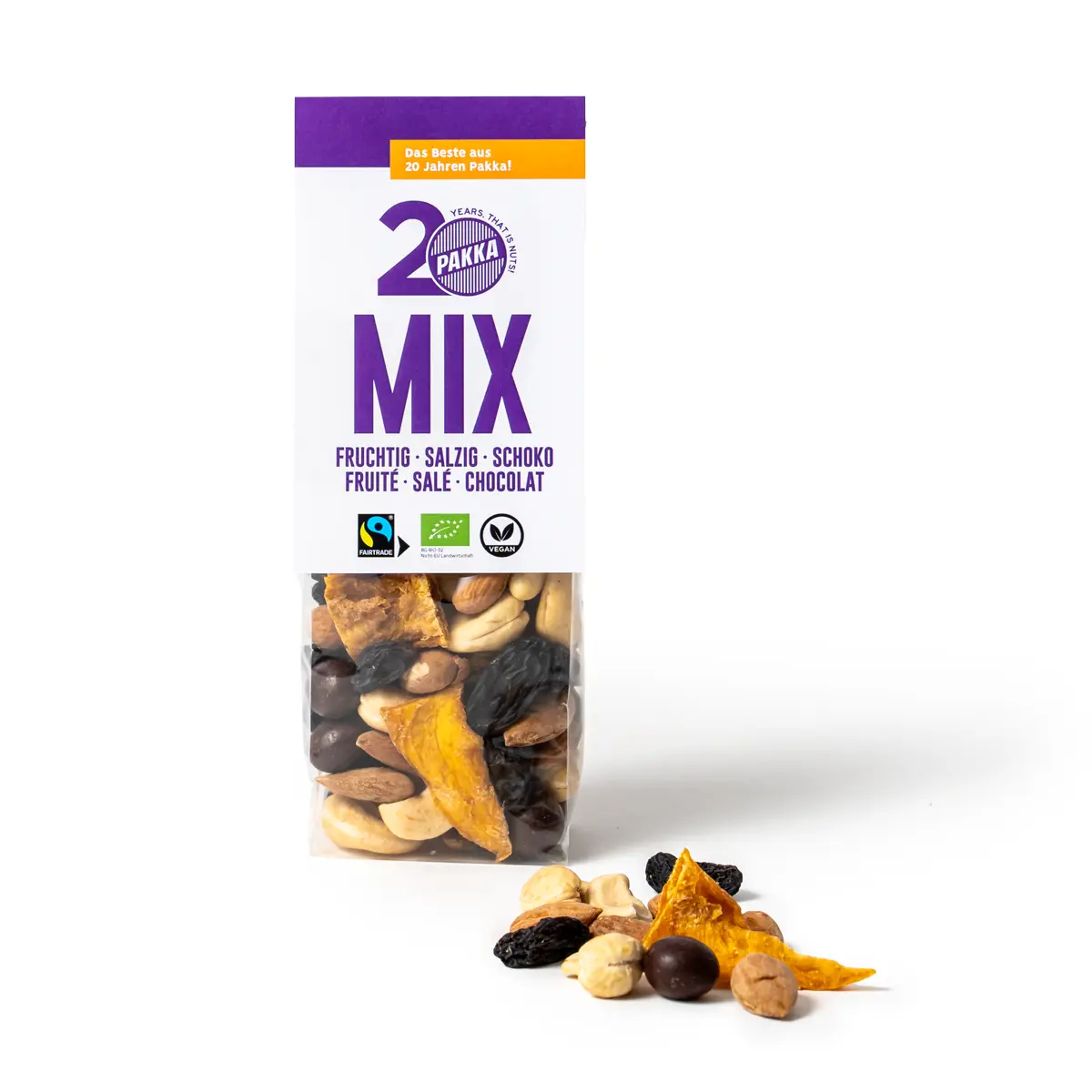 Ein Mix mit dem Besten aus 20 Jahren Pakka! 5 Bio-Fairtrade-Zutaten aus Pakka-Lieferketten: Mal fruchtig-süss, nussig-salzig, exotisch-schokoladig oder pur & naturbelassen. Details folgen – bleib gespannt.